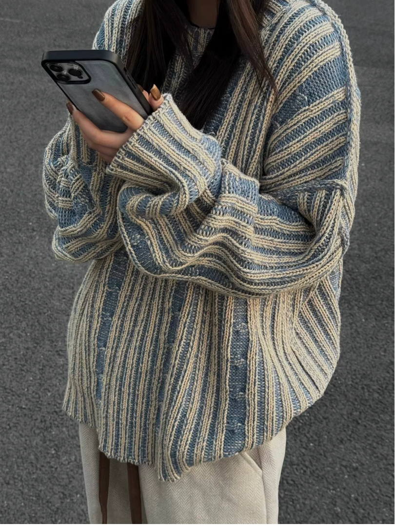 HOTÁo len kẻ sọc cổ điển cleanfit tương phản dành cho nữ xu hướng thời trang đường phố xuân thu