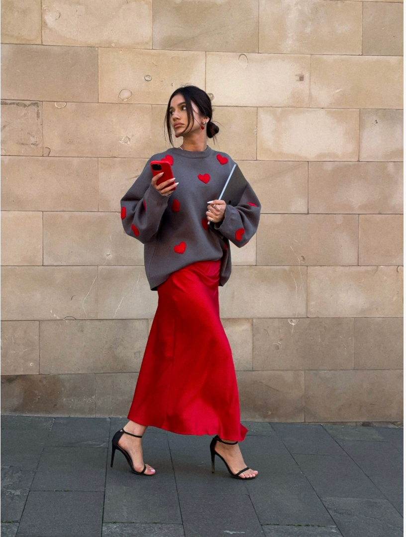 Tên: Áo len nữ tay dài cổ tròn phong cách lười biếng đầu thu Amazon xuyên biên giới Love Color-woven Bottoming Shirt dành cho nữ mùa thu