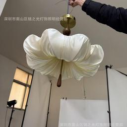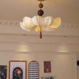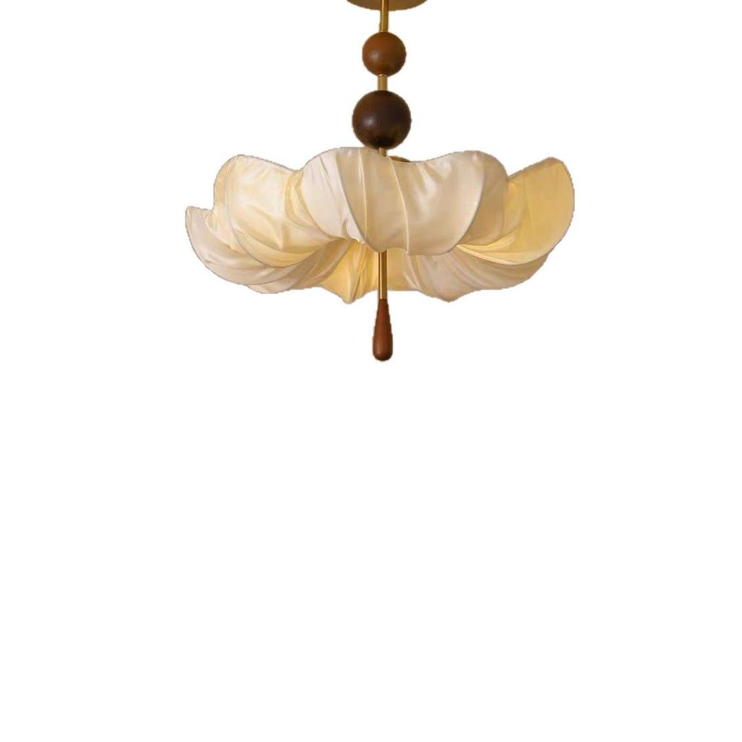 HOTĐèn trần phòng ngủ phong cách cổ điển Pháp, đèn vải hình lá sen bằng gỗ óc chó màu kem, đèn phòng ngủ, đèn treo hình đám mây cho phòng ăn.
