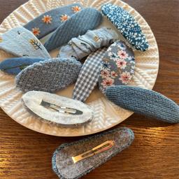 HOTKẹp tóc BB kiểu Hàn Quốc mới, họa tiết hoa xanh, kẹp tóc thêu kẻ sọc denim, kẹp tóc mái cho trẻ em, kẹp tóc đa năng.