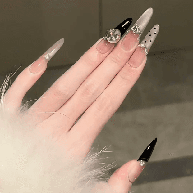 Thiết kế chấm bi cao cấp trên nền đen huyền bí, hòa quyện sắc rượu sâm banh sang trọng tạo nên vẻ đẹp vừa ngọt ngào vừa thời thượng 🍾. Hiệu ứng mắt mèo lấp lánh chuyển động theo ánh sáng, tôn lên đôi tay thanh thoát, cuốn hút ngay từ ánh nhìn đầu tiên 👁️💅. Phong cách móng dành cho cô gái hiện đại, tự tin, nổi bật trong mọi khoảnh khắc ✨