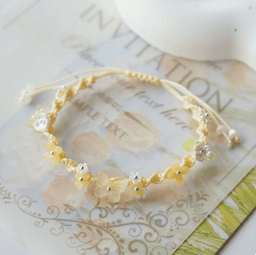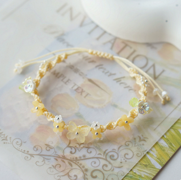 Chiếc vòng tay lấy cảm hứng từ hoa Osmanthus thơm ngọt và ánh trăng vàng kem ấm áp 🌙💛, được bện thủ công tinh tế kết hợp charm bướm nhỏ bay lượn 🦋 tạo cảm giác nhẹ nhàng, nữ tính và đầy thơ mộng. Thiết kế hoa mềm mại đan xen từng sợi dây giúp cổ tay trông thanh thoát, dễ phối với váy, áo len hay phong cách vintage 🌼. Phù hợp đeo hằng ngày hoặc làm quà tặng mang ý nghĩa dịu dàng và tinh tế 🎁.