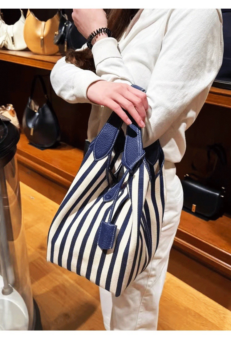 HOTTúi tote vải canvas sọc mới của Raff Đông Quan, túi đeo vai đi làm, giỏ đựng rau di động, túi xách nữ