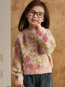 HOTÁo khoác cardigan dệt kim cho bé gái, áo len ngắn ấm áp họa tiết hoa phối màu ngọt ngào mùa thu đông, áo len dệt kim màu hồng hợp thời trang cho bé gái