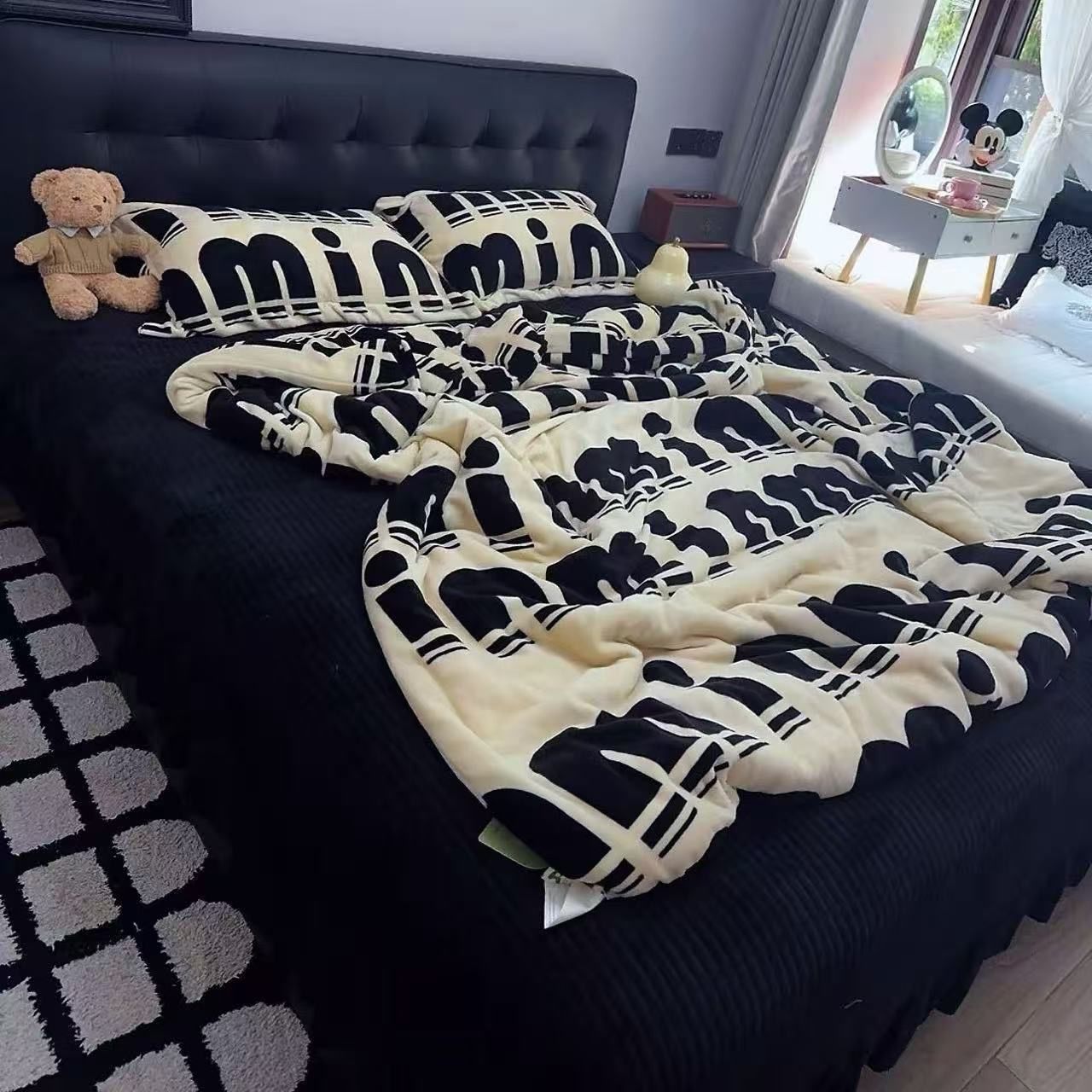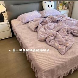 HOTBộ chăn ga gối bốn món ấm áp mùa đông, chất liệu lông cừu sữa, có lớp lót dày dặn, chần bông, hai mặt lót lông cừu.