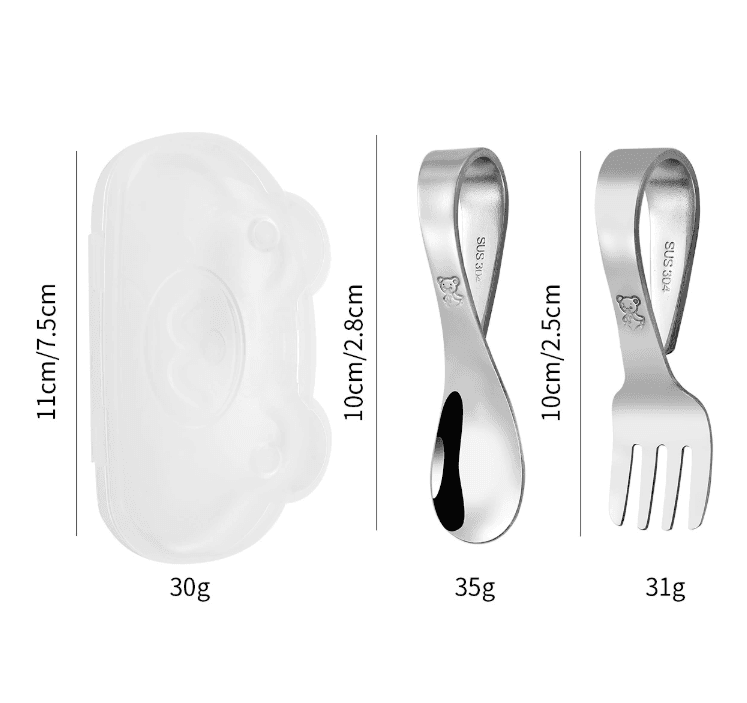 - 🌈 Thiết kế bo tròn an toàn: Đầu muỗng và nĩa bo tròn, tránh gây trầy xước miệng bé.