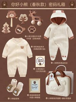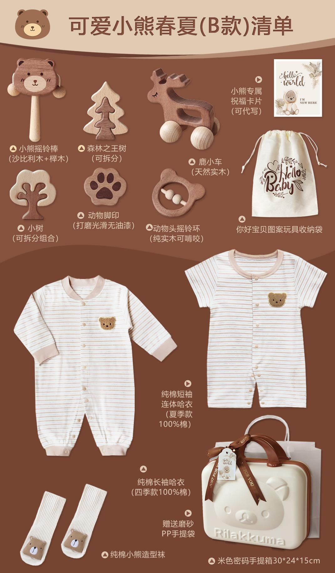 HOTBộ quà tặng cho bé, bộ gấu bông cho bé trai và bé gái, đồ chơi bằng gỗ, vali bằng vải cotton hữu cơ, quà tặng phong cách mùa xuân, thu và đông.