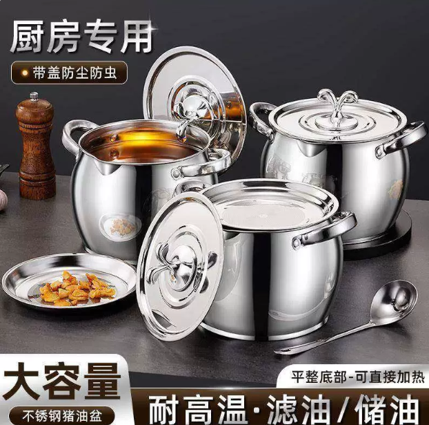 HOTBồn chứa mỡ lợn bằng thép không gỉ có nắp đậy với bộ lọc nồi dầu