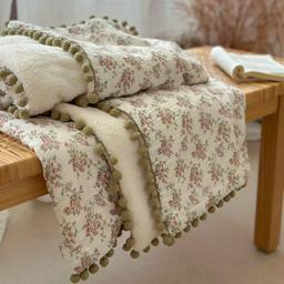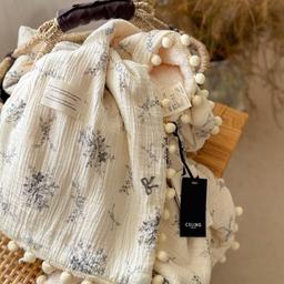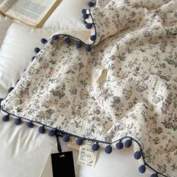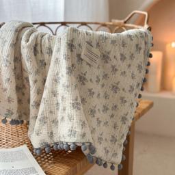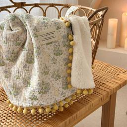 HOTChăn em bé bằng vải bông mềm mại có quả bông dễ thương, chăn du lịch, chăn kê chân văn phòng.