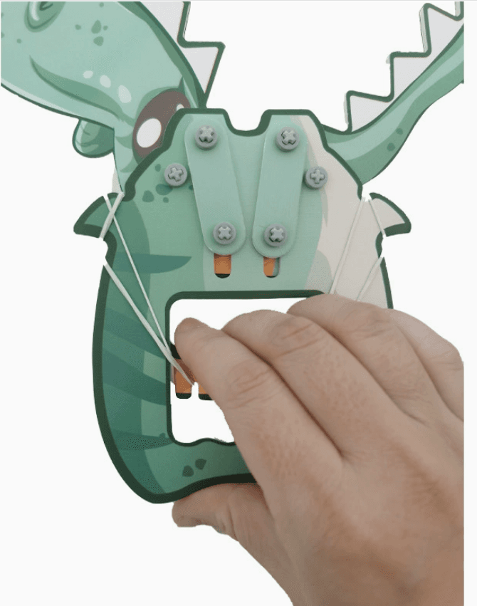 Thiết kế mô phỏng hàm khủng long có thể cử động bằng cơ cấu tay gạt, mang lại cảm giác thú vị khi thao tác.