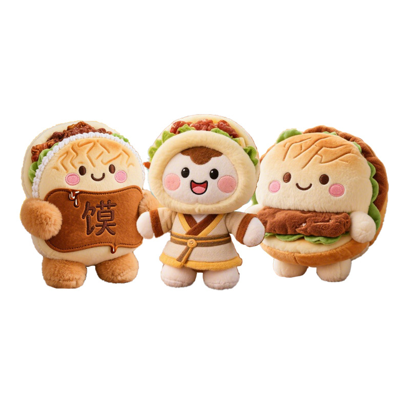 HOTĐồ chơi nhồi bông mang tính văn hóa và sáng tạo được thiết kế riêng, móc khóa hình búp bê bánh mì kẹp thịt bảo tàng, gối hình búp bê thịt lừa nướng lửa được thiết kế riêng.