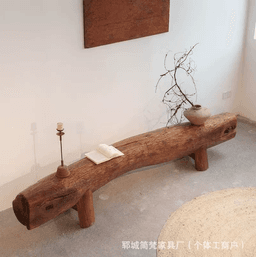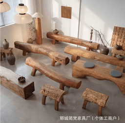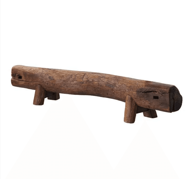 Ghế gỗ nguyên khối được chế tác từ thân gỗ tự nhiên nguyên bản, mang đậm phong cách rustic (mộc mạc) và thiền tĩnh.
