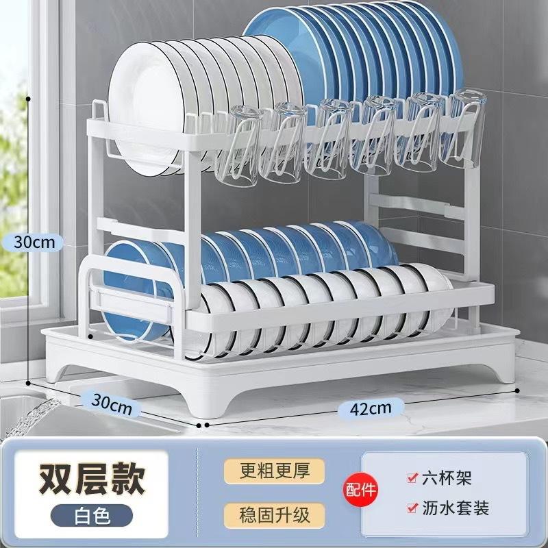 HOTGiá đựng đồ nhà bếp có khay thoát nước, giá để đồ hai tầng đa chức năng đặt trên mặt bàn, dùng để đựng bát, đĩa, đũa, dao, thớt và cốc.