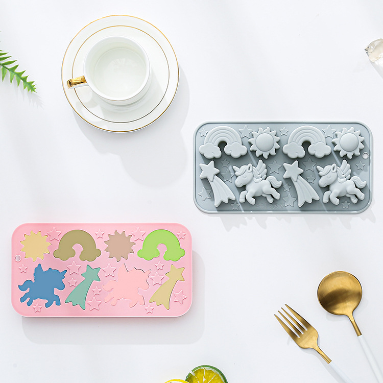 HOTKhuôn silicon làm bánh hình cầu vồng sao băng, hình kỳ lân, mặt trời, 8 ngôi sao liên tiếp, dùng để trang trí bánh kem và đá.