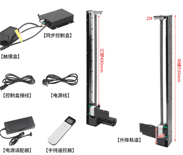 Phụ kiện ray trượt cửa trượt điện tử thông minh, chiều cao 530mm, hành trình 400mm (vị trí chồng chéo 130mm)