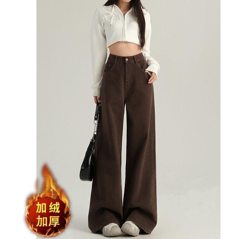 HOTQuần jeans ống đứng lót lông cừu Merard bán chạy nhất mùa Thu/Đông dành cho nữ, kiểu dáng mới, cạp cao, dáng rộng, tôn dáng, dài đến sàn.