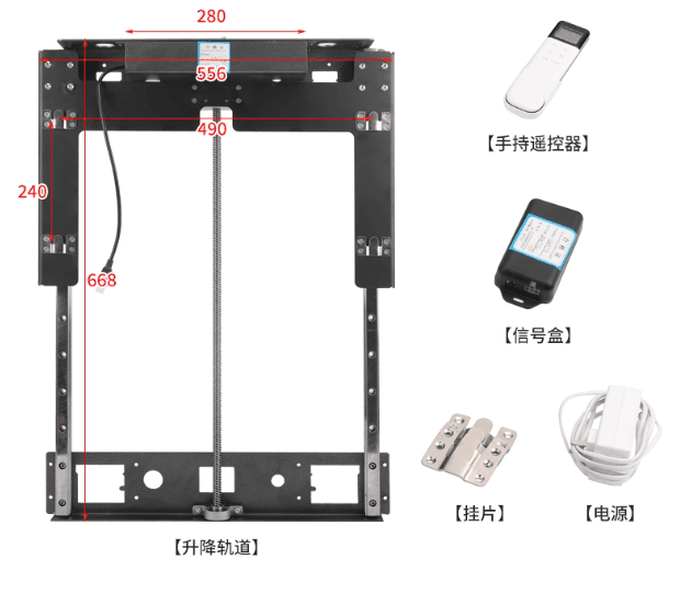Ray nâng hạ điều khiển từ xa, động cơ đơn, cao 670mm - tải trọng 35kg (chồng lên nhau 150mm)
