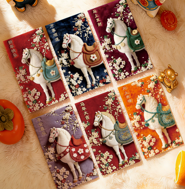 HOTTúi lì xì năm mới thêu nhung 3D hình ngựa 2026, thiết kế riêng theo yêu cầu, đựng tiền lì xì may mắn cho Tết Nguyên Đán.