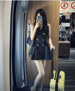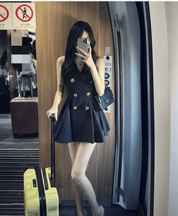 HOTVáy Pháp, khí chất giảm béo mùa hè của phụ nữ, phong cách hương thơm nhỏ của người nổi tiếng, cổ chữ V hai dây, váy ngắn xếp ly chữ A thắt eo